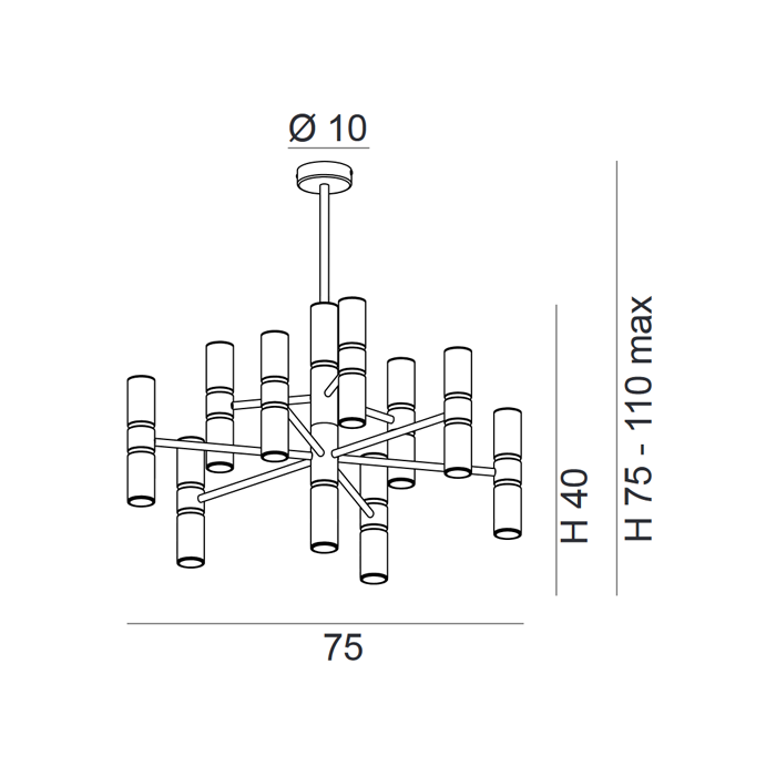 Dimensioni: diametro 75 cm x H. 75-110 cm max