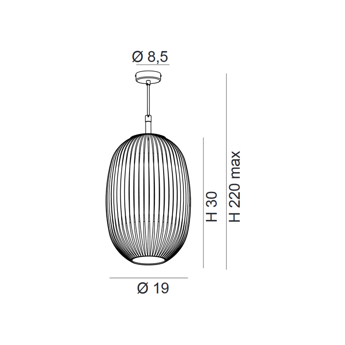 Dimensioni: diametro 20 cm x H. 220 cm max