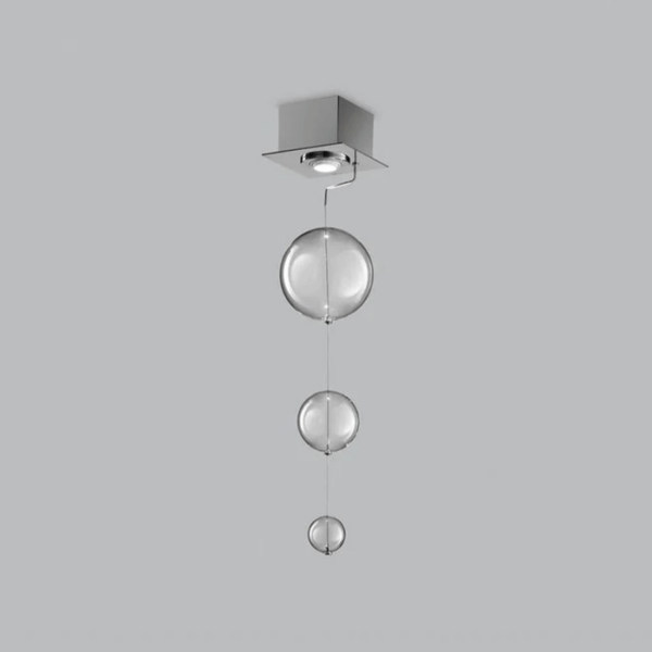Da una solida base inox a taglio laser scendono leggere ed eleganti infinite soluzioni compositive di estrema trasparenza che animano spazi e tempi di una luce gioiosa e tersa.