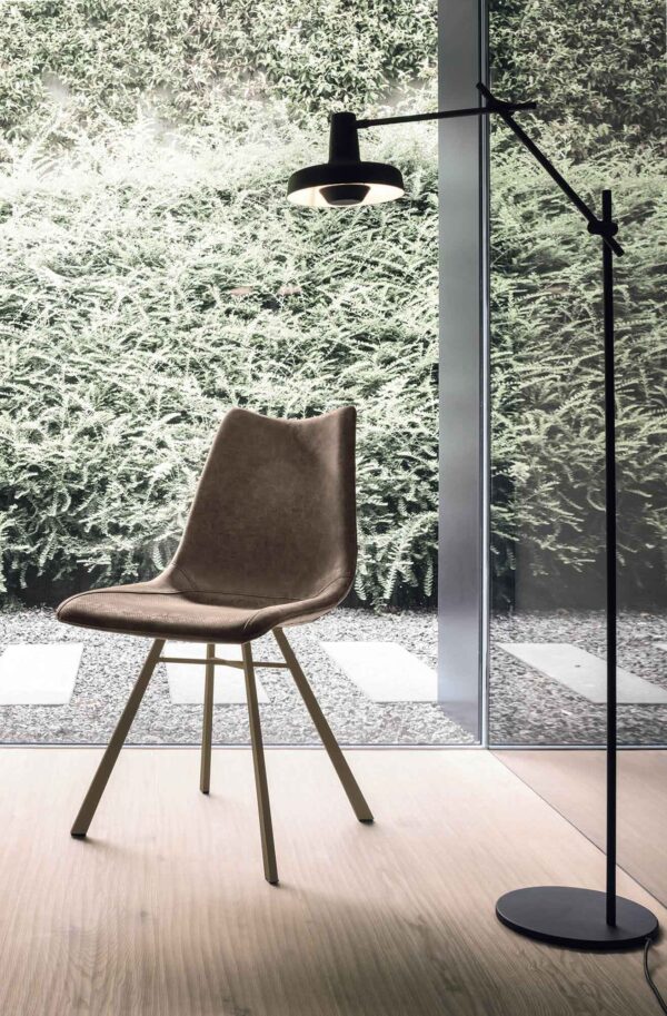 Sedia con struttura in metallo verniciato e seduta in morbida microfibra effetto velluto o Soft-Touch Vintage (100% Polivinilcloruro).